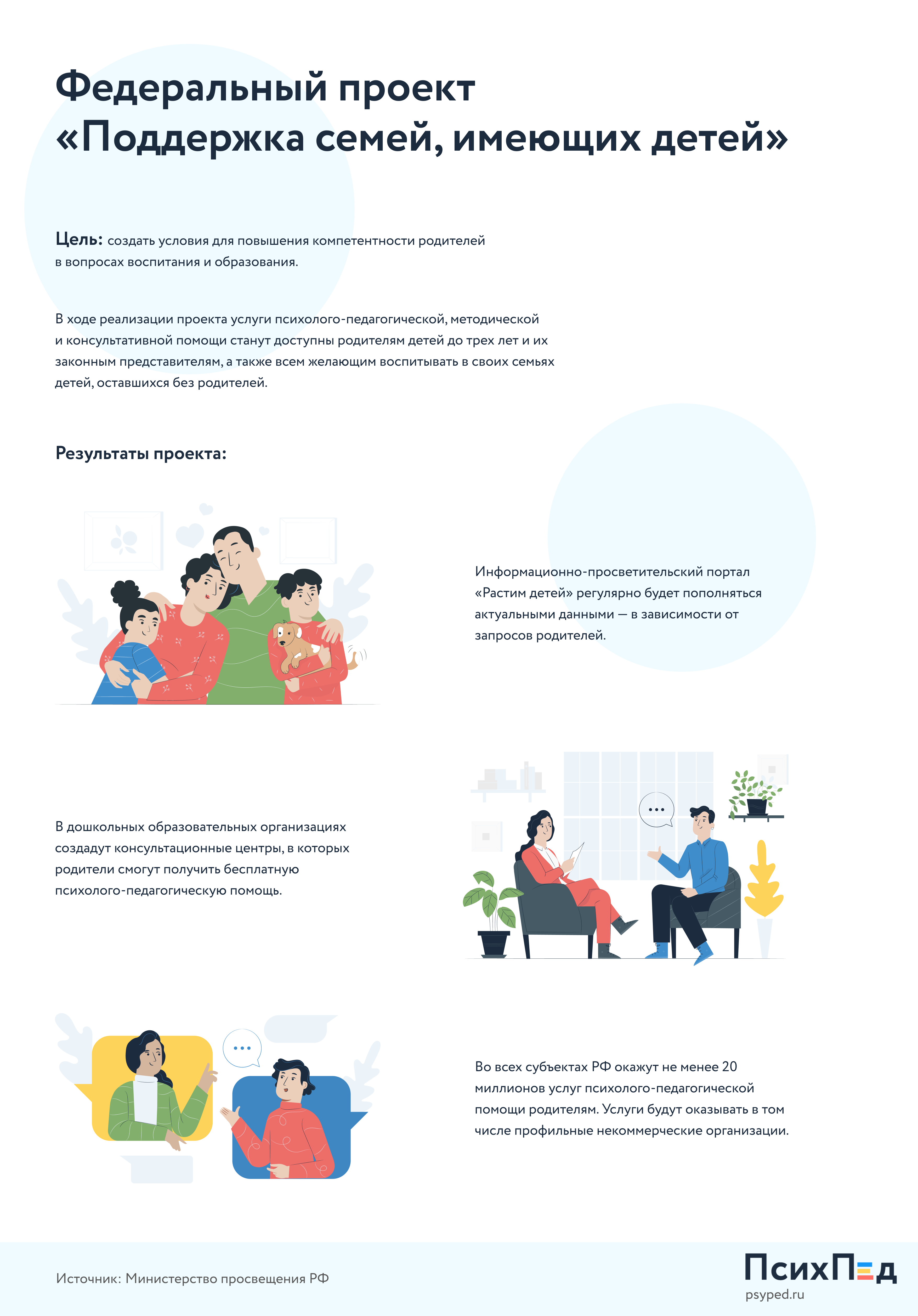 В ходе проекта родителям обеспечивают методическую и психолого-педагогическую поддержку.